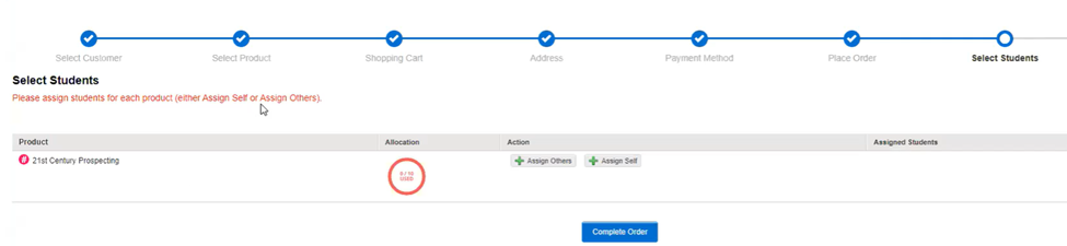- Click the Assign Students button. There you will have an option to assign the course to you or another user or Complete Order and you may assign the keys later fromeCommerce-My Orders.