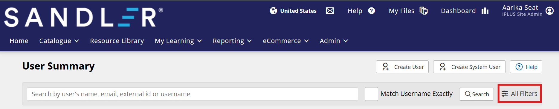 - Next, click the name of the user in the search results. The User Summary screen is displayed.