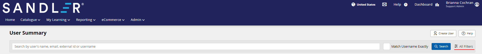 The User Summary is used to see details of user profiles and generally manage user accounts. You can search for users with a common attribute e.g. Organization, learning role or for all direct reports of a single Manager.