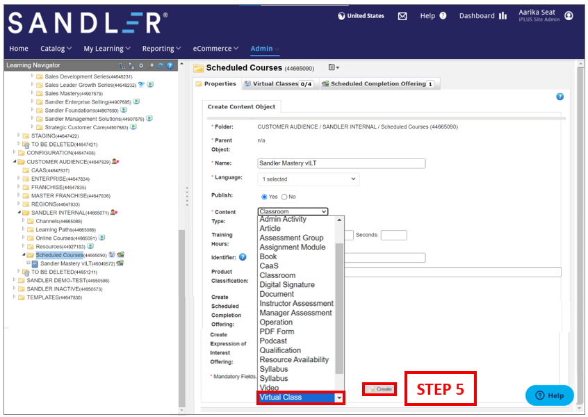 NOTE: If this is for a VILT class offering, make sure to select the Virtual Class option in the Content Type field.