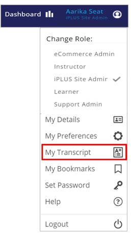 You can now quickly view or print your learner transcript containing your current progress or completion records for content assigned to you in the LMS. For example, let's say you are asked to send a transcript of all of your learning to your manager ahead of your annual review. Instead of doing this in the Reporting tool, you can now quickly pull this transcript from the My Transcript option in your LMS Profile menu. NOTE: The My Transcript option is limited to only the roles likely to need a learner’s transcript, such as the Learner and Manager roles.