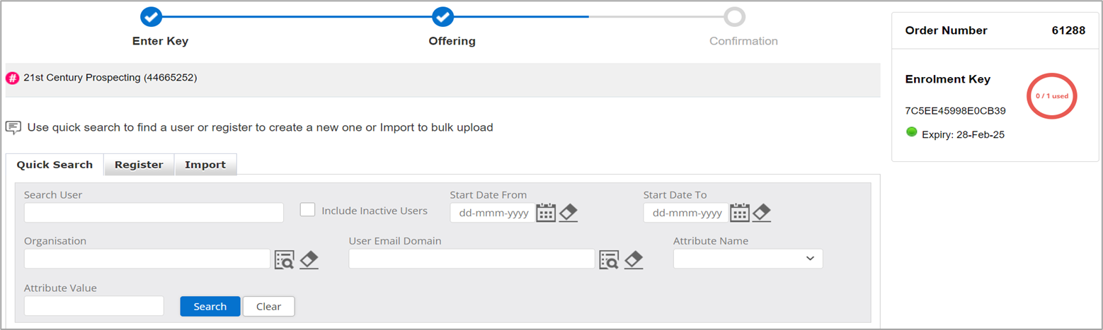 Enrollment Key Activation – Quick Search